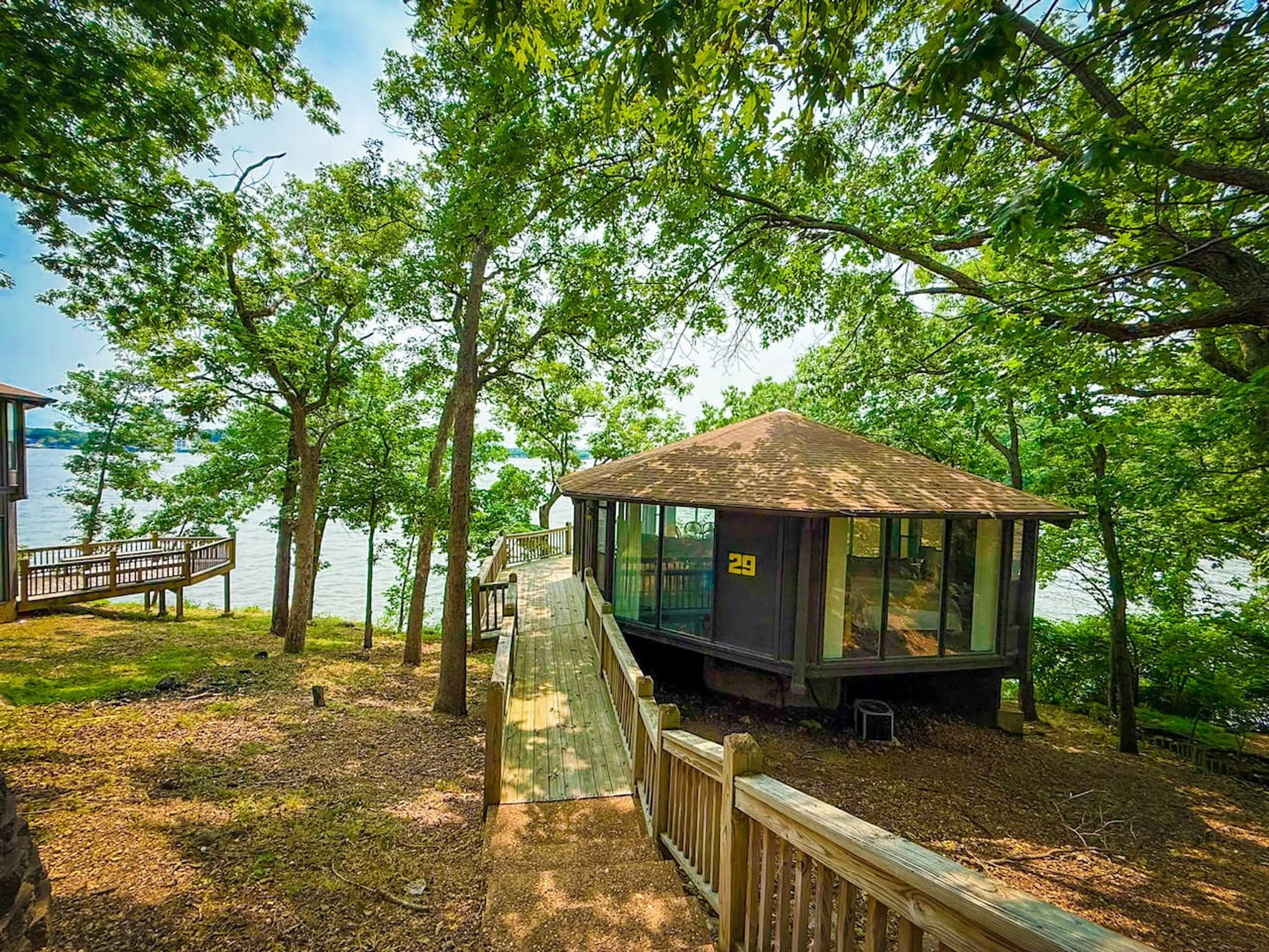Escape to the iconic Treetop Village in this lakefront 2BR/3BA villa inspired by Frank Lloyd Wright's design. Nestled in the trees with tranquil water views, this historic home features original décor and flooring, open living/dining, and a stocked kitchen. Enjoy 2 seasonal outdoor pools (May–Sept),...