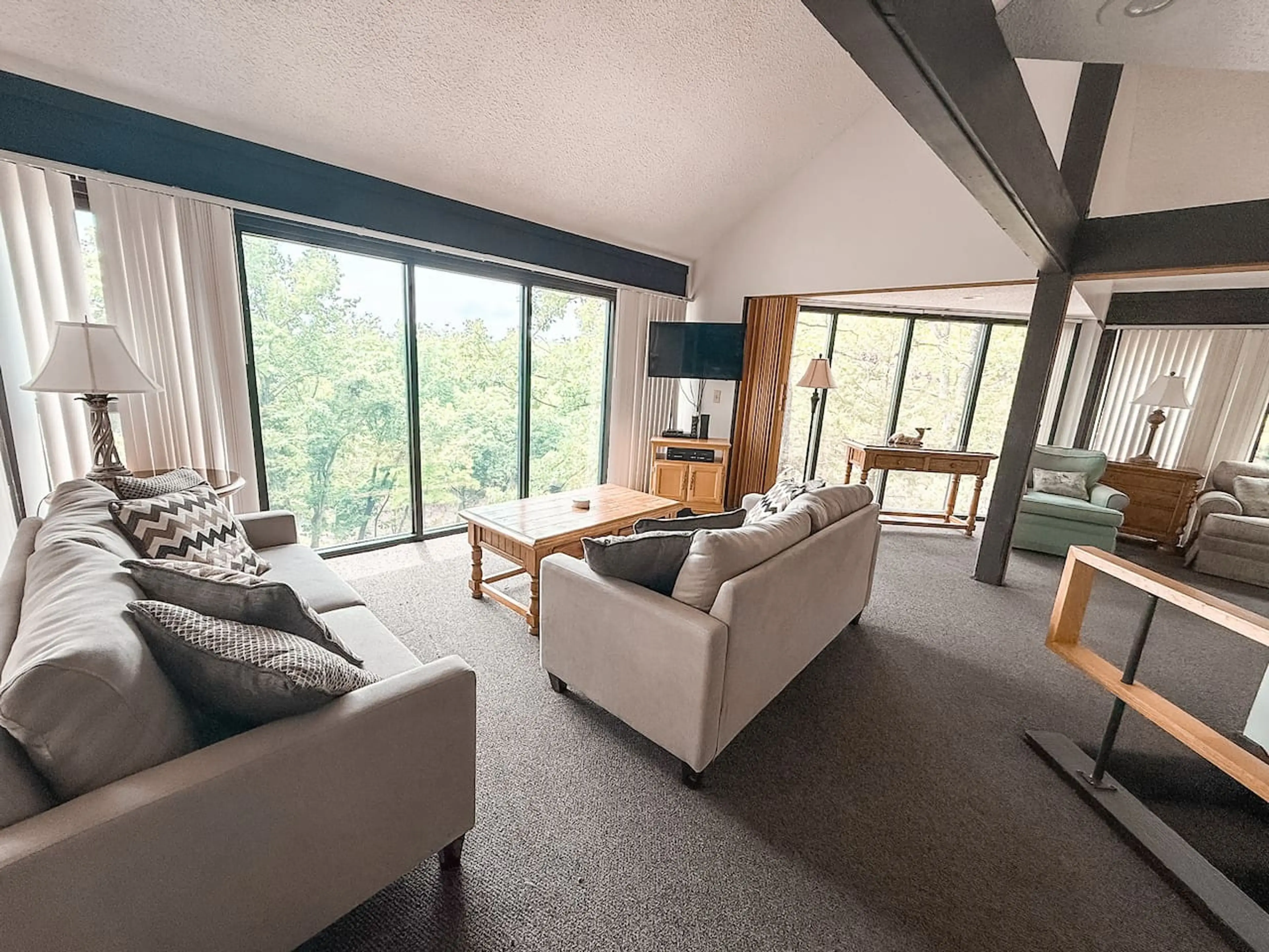 Escape to iconic Treetop Village in this 3BR/3BA villa inspired by Frank Lloyd Wright design. Nestled in the trees, this historic home features original décor and flooring, open living/dining, and a stocked kitchen. Enjoy 2 seasonal outdoor pools (May–Sept), indoor aquatic center, community fishing ...