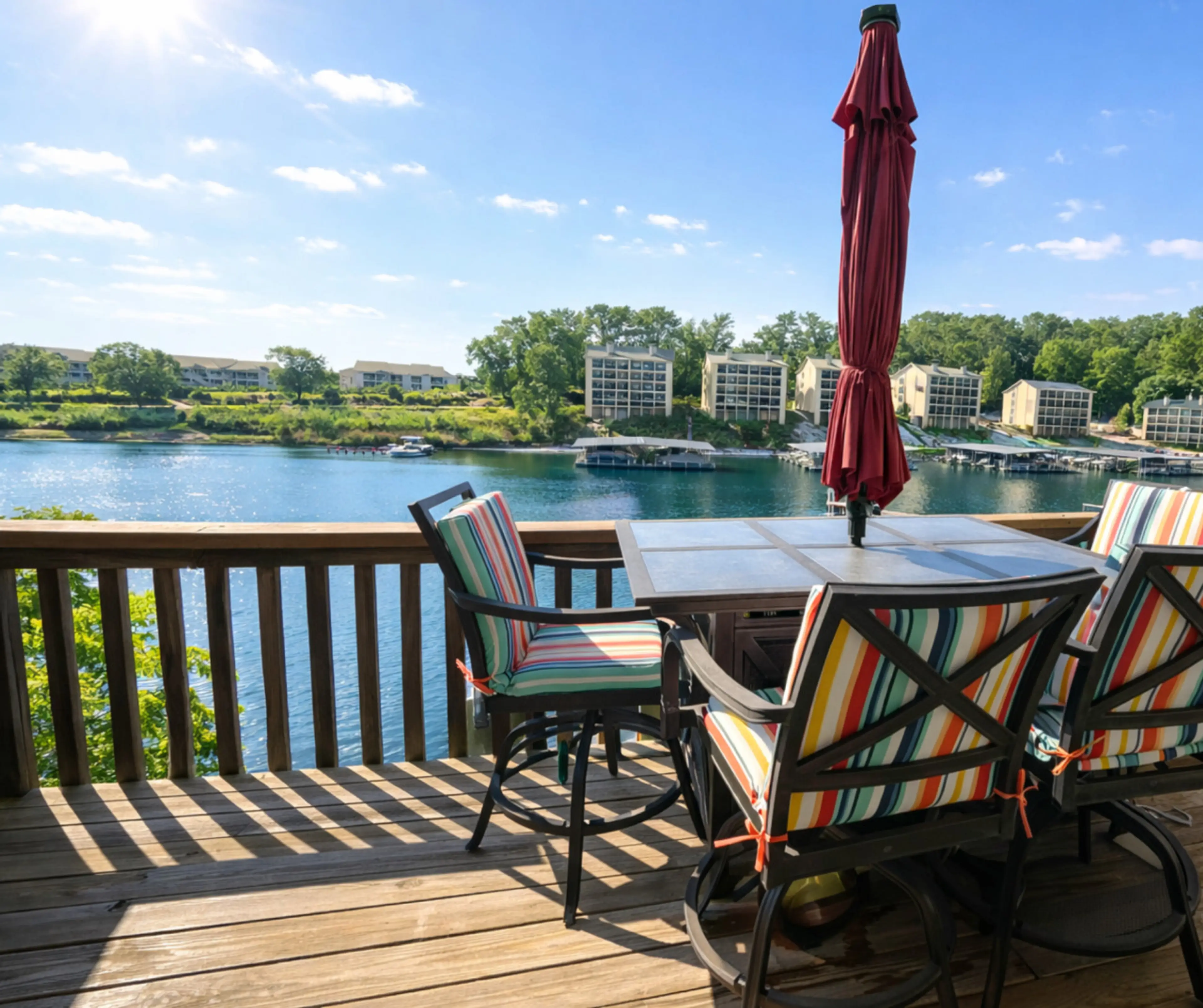 Sunshine and Roses Getaway is a lakefront 1BR, 1BA condo in Southwood Shores at Lake of the Ozarks. Sleeps up to 4 with two queen beds, smart TV, full bath, open kitchen with eat-in bar and coffee station, and in-unit washer/dryer. Enjoy a private lakefront deck with seating and grill. Access indoor...